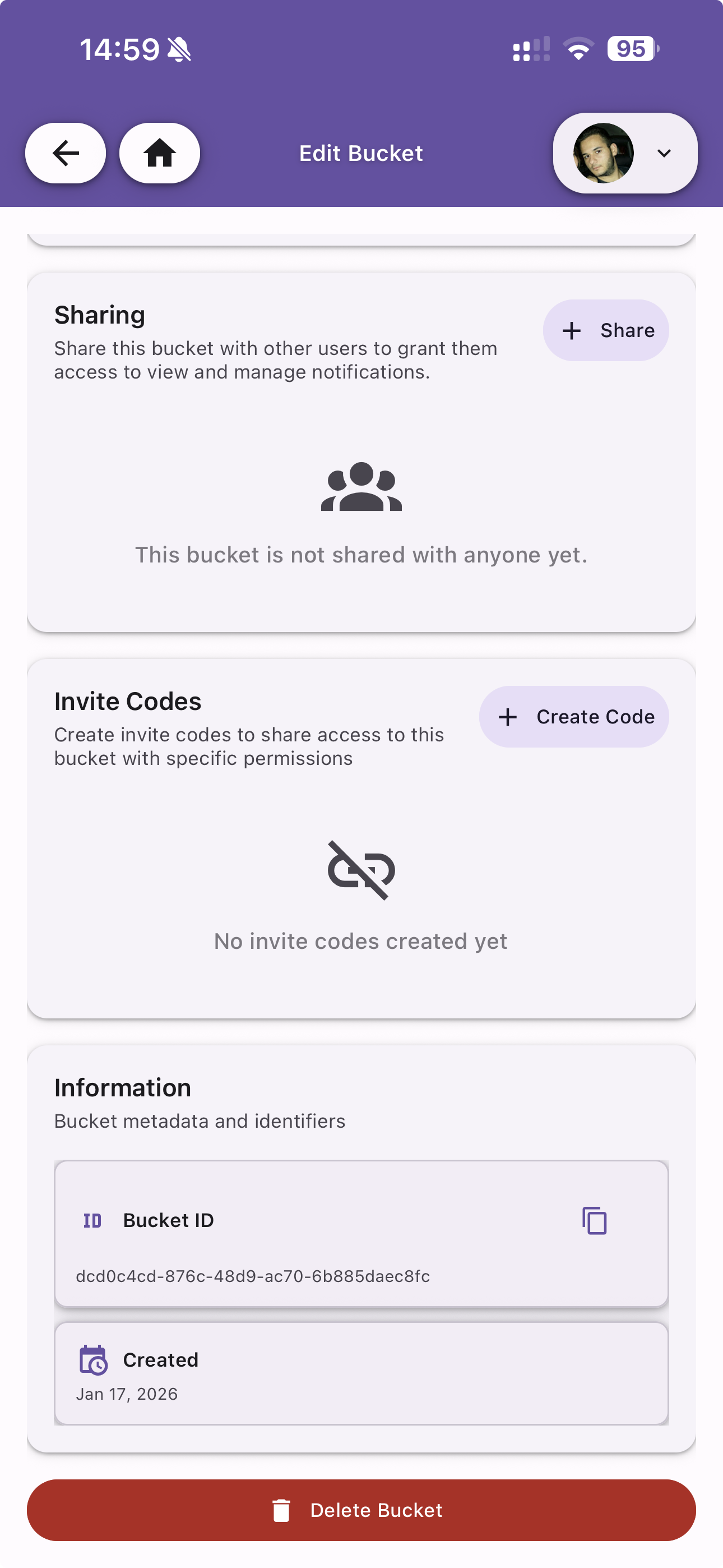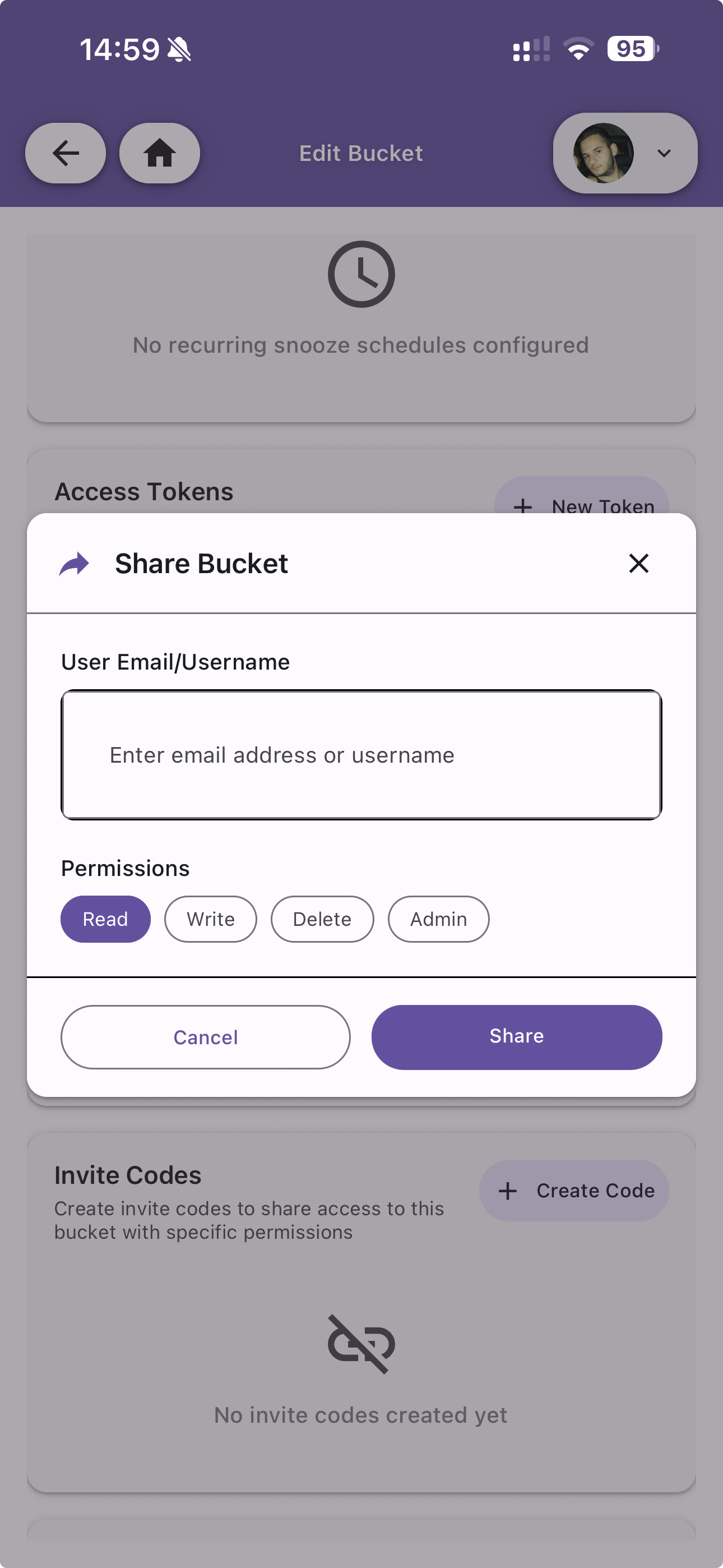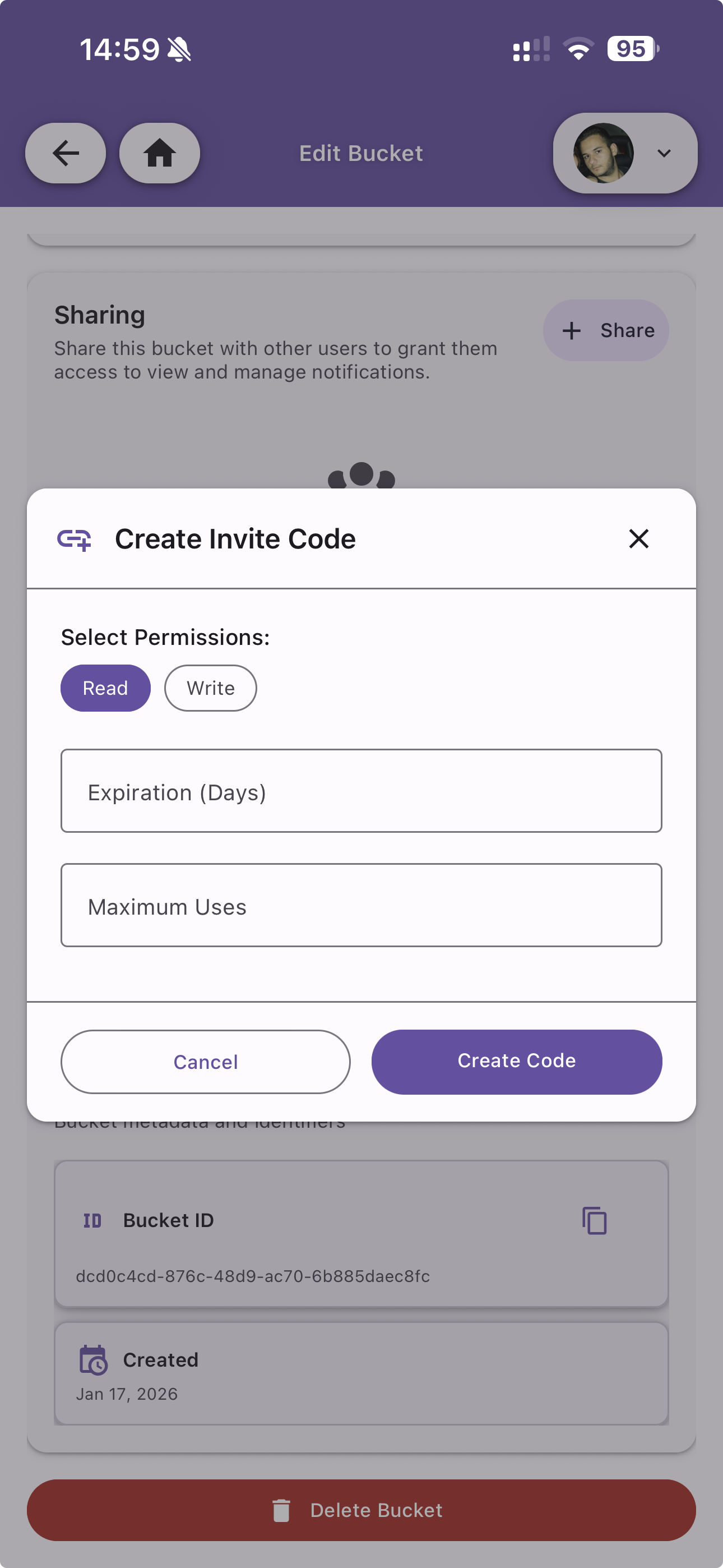 Share the bucket with other users or generate invite codes.