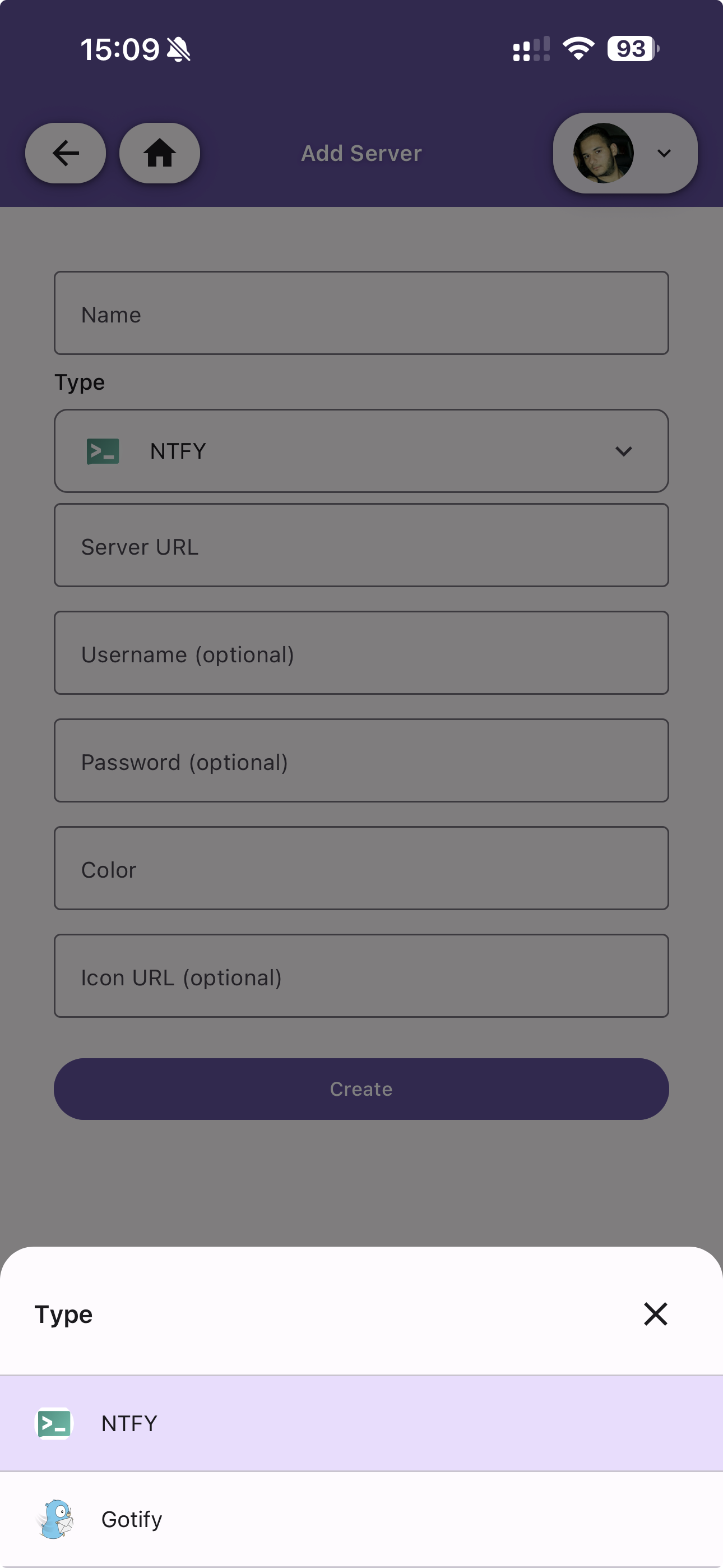 | Type | The server type — NTFY or Gotify |