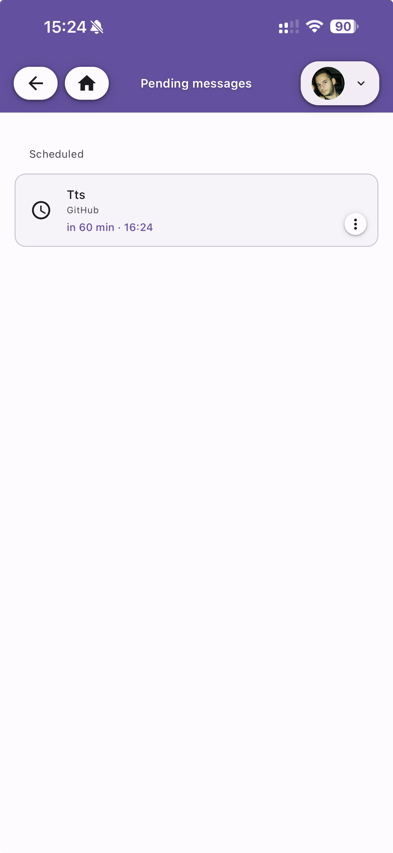 Pending messages are grouped under the Scheduled section. Each entry shows: