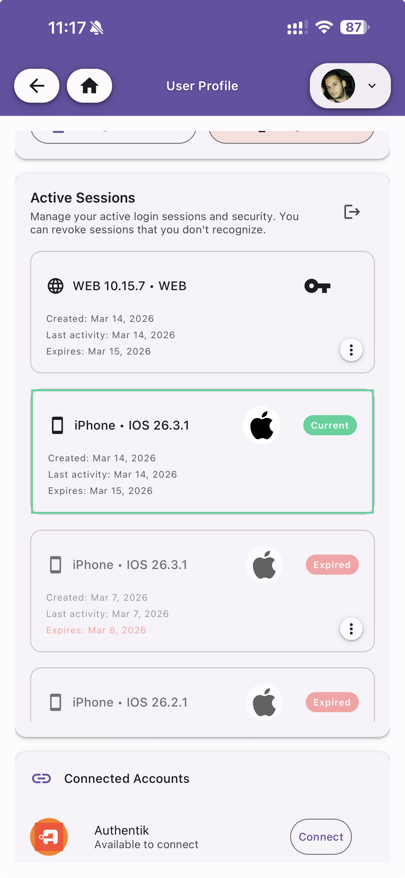 You can revoke sessions you don't recognize by tapping the menu icon on each entry.