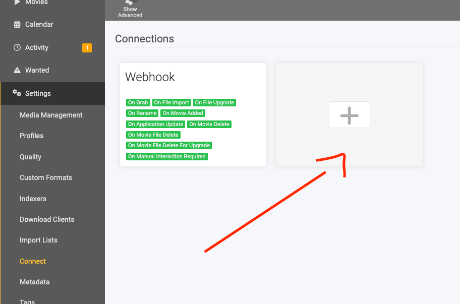 Now configure the webhook in your *arr service (Sonarr, Radarr, Lidarr, Readarr, etc.):