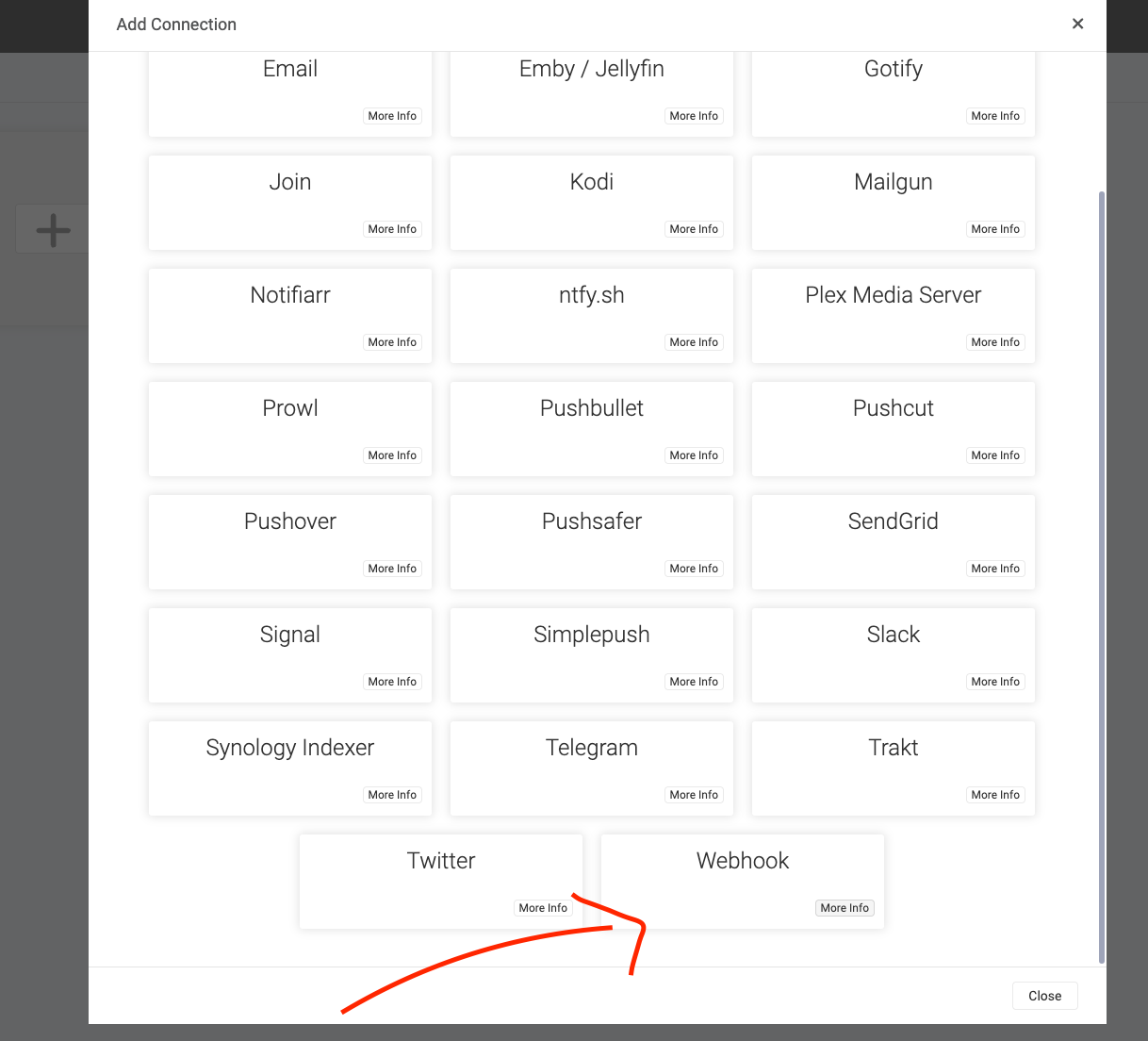 This tutorial is valid for all *arr services that support webhook notifications.