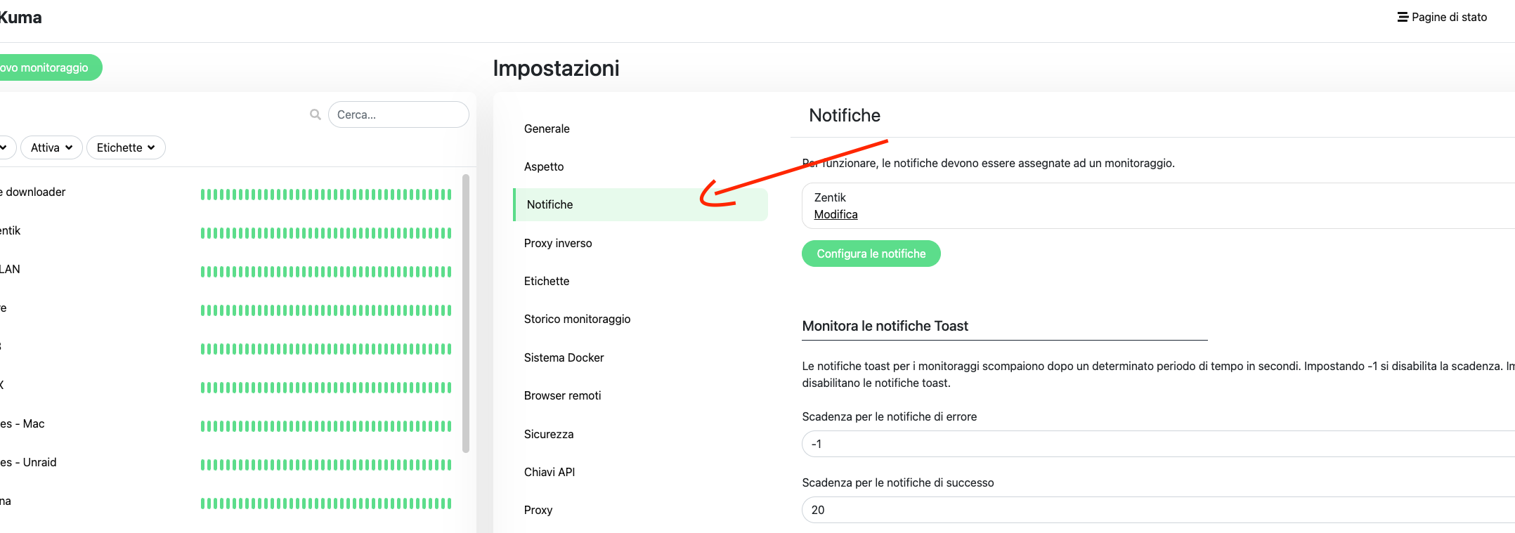 - Open your Uptime Kuma dashboard
